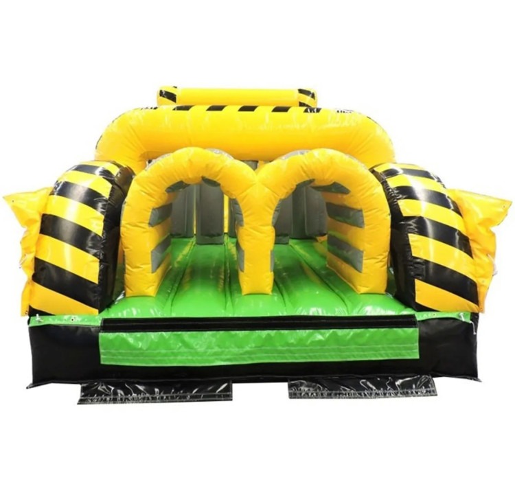 Conquer a massive challenge course designed for two racers at once: a 40-foot double-lane obstacle course featuring a thrilling climb-and-slide finish. This inflatable rental combines winding obstacles, barriers, and tunnels that test agility and speed, then rewards competitors with a fast, exciting slide to the finish. Built for head-to-head fun, it’s perfect for school events, church picnics, corporate team builders, birthday parties, and community festivals where competitive group entertainment is desired. Durable, brightly colored, and roomy enough for adults and kids (age and weight limits determined by the operator), it offers high-energy play while maintaining a compact footprint for event setups that need a long, linear attraction. Easy to supervise from both lanes, this unit creates instant excitement, encourages friendly competition, and keeps lines moving with two simultaneous racers.